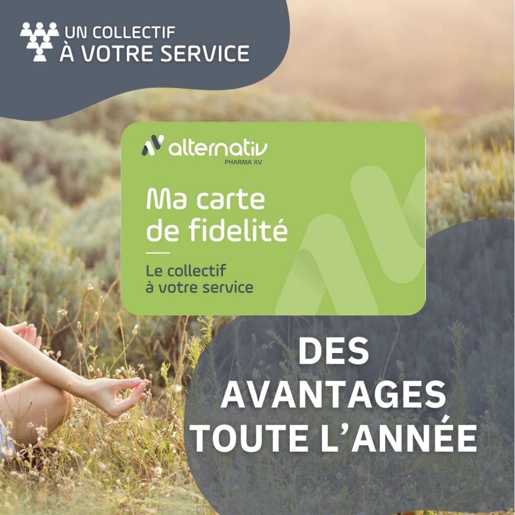 Grâce au réseau Alternativ Pharma XV dont fait partie votre pharmacie, bénéficiez toute l’année d’avantages sur les produits de parapharmacie !